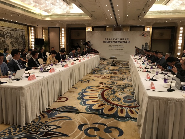 剛才樸銀夏大使在發(fā)言中提出,甚至是有些悲觀地說(shuō)今天是唯一一場(chǎng)中韓之間關(guān)于未來(lái)戰(zhàn)略方向發(fā)展的對(duì)話(huà)。但其實(shí)在我們討論的過(guò)程中,習(xí)近平主席和文在寅總統(tǒng)已經(jīng)互通賀電,互相慶祝中韓建交25周年。兩國(guó)最高領(lǐng)導(dǎo)人都表示要鞏固政治互信,妥善處理分歧,推動(dòng)兩國(guó)關(guān)系的健康穩(wěn)定發(fā)展。我想,這是我們大家共同的心聲、共同的愿望。今天我們所有在會(huì)上的各位,都愿意看到我們兩國(guó)的關(guān)系向著更為和平健康的方向發(fā)展。