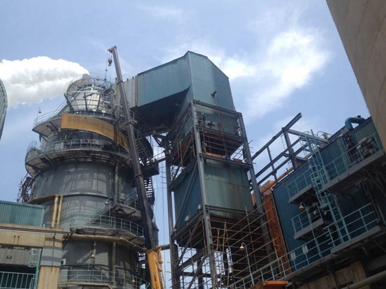 協(xié)鑫太倉(cāng)超低排放項(xiàng)目吸收塔增高成功頂升