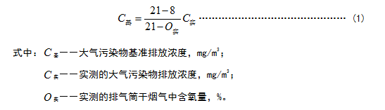 1.4 對(duì)于玻璃熔窯排氣(純氧燃燒除外),應(yīng)同時(shí)對(duì)排氣中含氧量進(jìn)行監(jiān)測(cè),實(shí)測(cè)排氣筒中大氣污染物排放濃度應(yīng)按式(1)換算為含氧量為8%狀態(tài)下的基準(zhǔn)排放濃度,并以此作為排放是否達(dá)標(biāo)的依據(jù)。其他車間或生產(chǎn)設(shè)施排氣按實(shí)測(cè)濃度計(jì)算,但不得人為稀釋排放。